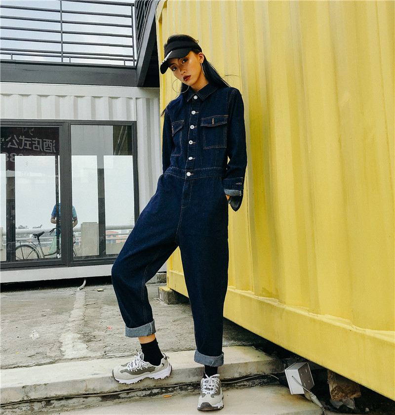 This denim jumpsuit can be styled with sneakers or flats for a casual look, or paired with boots and accessories for a more elevated appearance. The versatile design allows it to transition easily from daytime wear to evening outings. Available in sizes S to XL, it is made to accommodate different shapes while maintaining a confident and stylish fit.